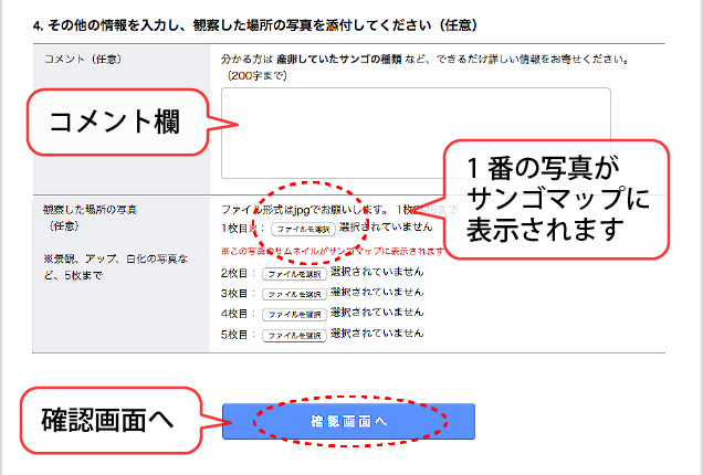 ※「サンゴがいた/いなかった」を報告した場合は、「サンゴマップ:サンゴの分布情報マップ」にも反映されます。